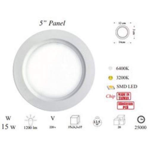 Etiketler: Toptan Elektrik Malzemeleri-Ct-15w-5-inch-Led-Panel-Armatur
