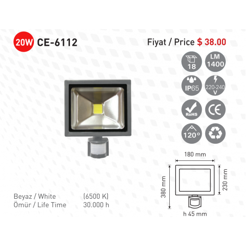 Etiketler: Toptan Elektrik Malzemesi-CE-light CE-6112-Sensorlu-Led-Projektor