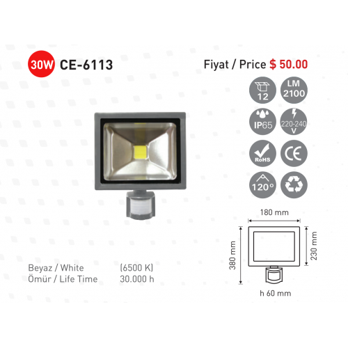 Etiketler: Toptan Elektrik Malzemesi-CE-light-CE-6113-Sensorlu-Led-Projektor
