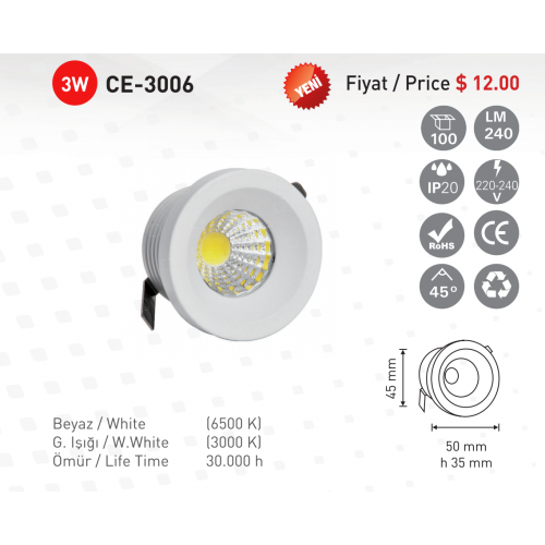 Etiketler: Toptan Elektrik Malzemesi-CE-light-CE-3006-Led-Tavan-Duvar-Armatur